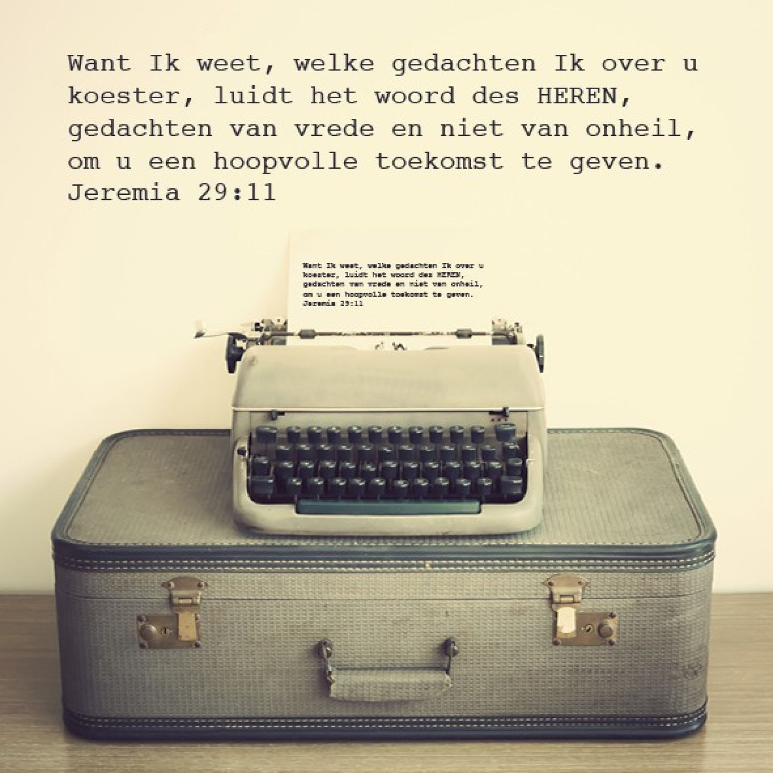 Want Ik weet, welke gedachten Ik over u koester, luidt het woord des Heren, gedachten van vrede en niet van onheil, om u een hoopvolle toekomst te geven.
