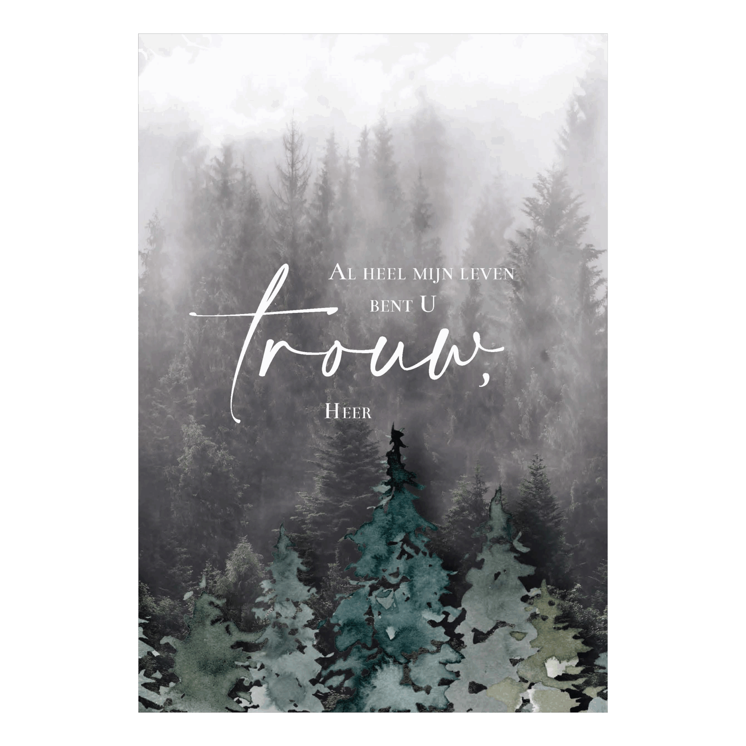 Wat een wonder dat God ons belooft dat Hij bij ons is! Vanaf het begin van ons leven tot aan het einde mogen we weten dat Hij trouw is. Deze dubbele wenskaart in A6-formaat kan aan de blanco binnenzijde beschreven worden en wordt geleverd met envelop.