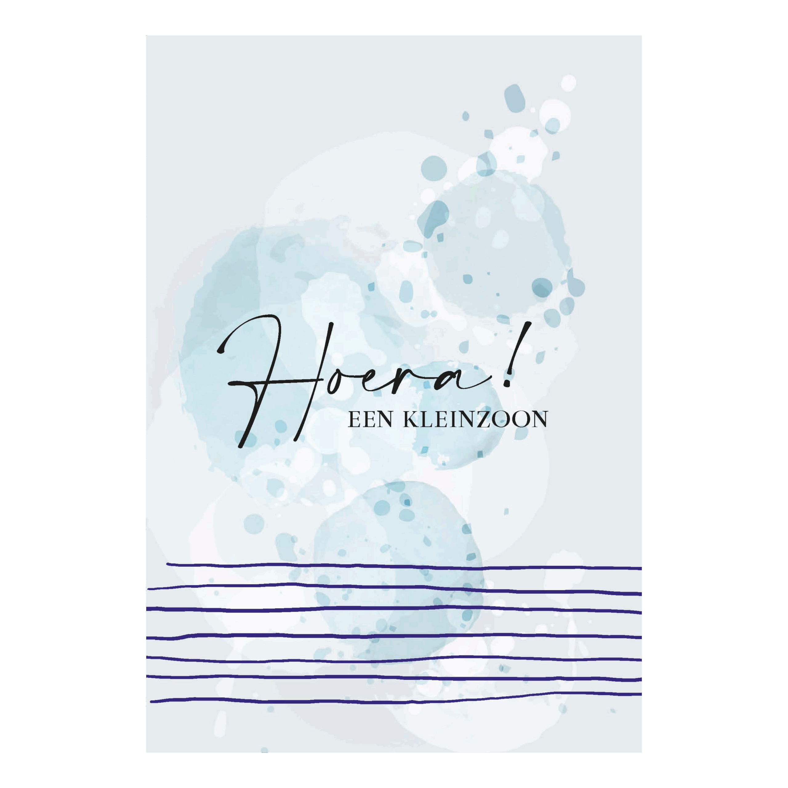 Hoera, er is een kleinzoon geboren! Feliciteer de grootouders met de geboorte van hun kleinkind. De dubbele wenskaart in A6-formaat kan aan de blanco binnenzijde beschreven worden en wordt geleverd met envelop.