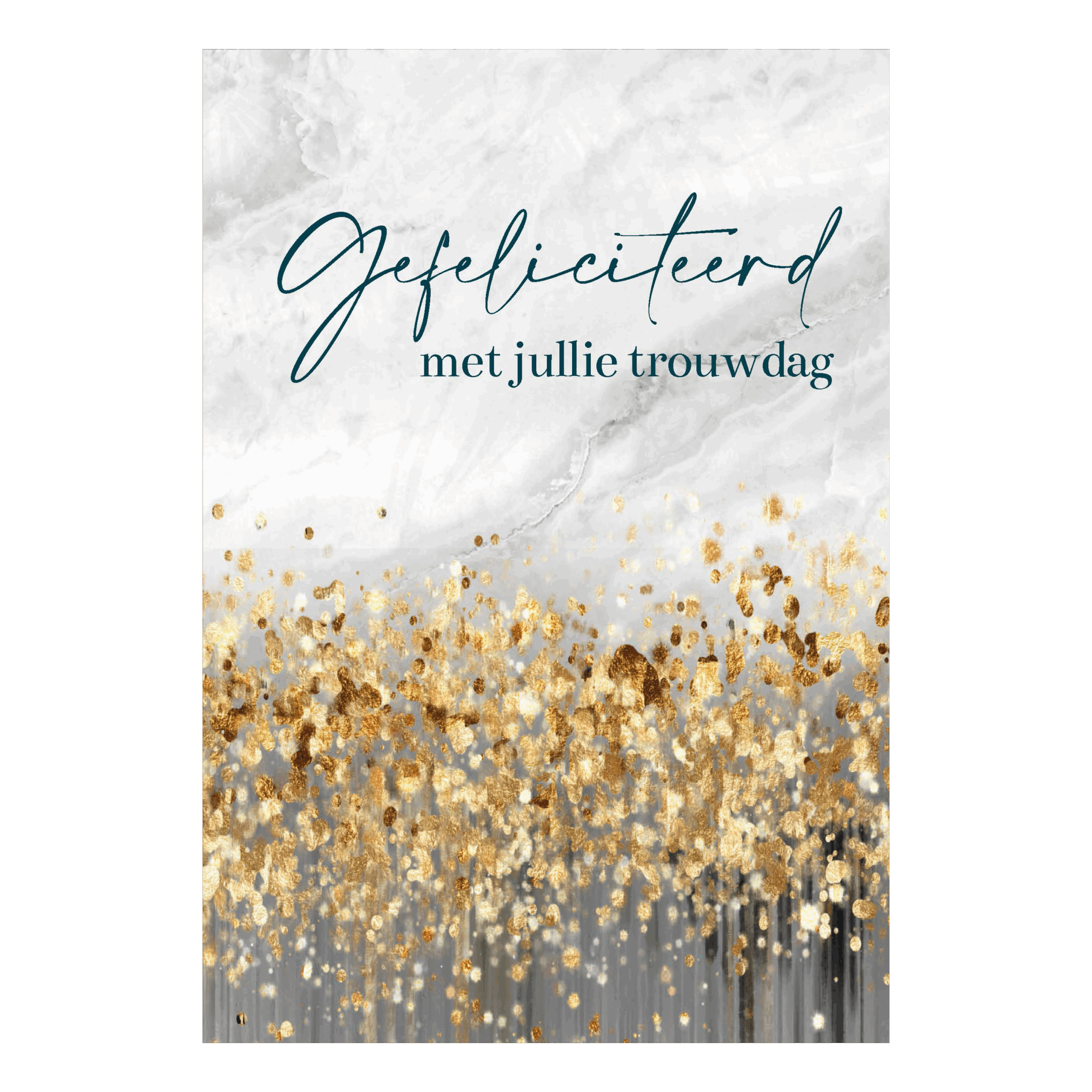 Hoera, er is iets te vieren! Feliciteer een echtpaar met hun trouwdag door middel van het sturen van deze feestelijke kaart. De dubbele wenskaart in A6-formaat kan aan de blanco binnenzijde beschreven worden en wordt geleverd met envelop. Maak de kaart extra bijzonder door er een persoonlijke boodschap in te schrijven.