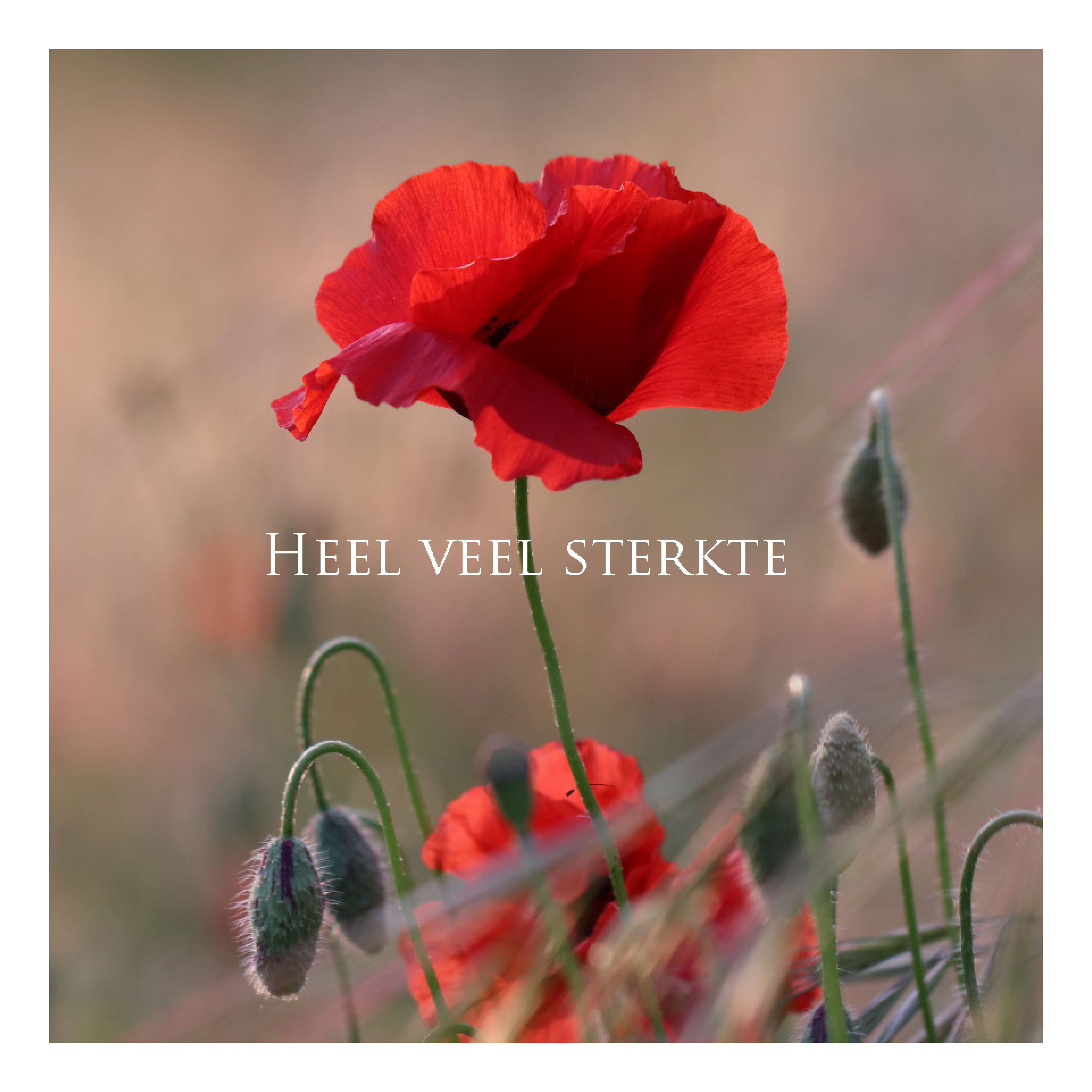 Deze vierkante, dubbele wenskaart (ca. 15 x 15 cm) is geschikt om te sturen in een periode van ziekte, overlijden of andere moeilijke tijd. Laat weten dat je meeleeft! Wordt geleverd met envelop.