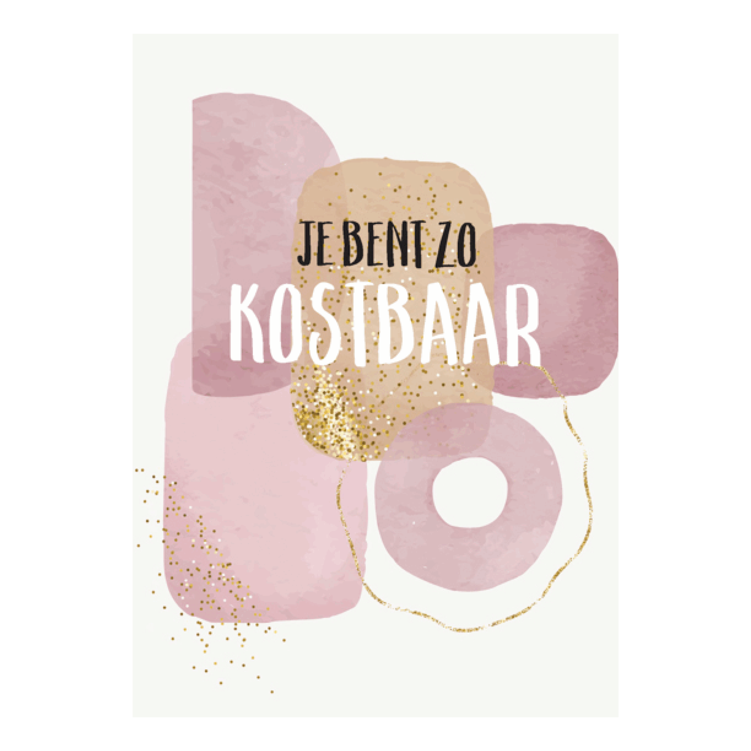 Dubbele kaart van ca 11×16 cm met de tekst: ‘Je bent zo kostbaar’