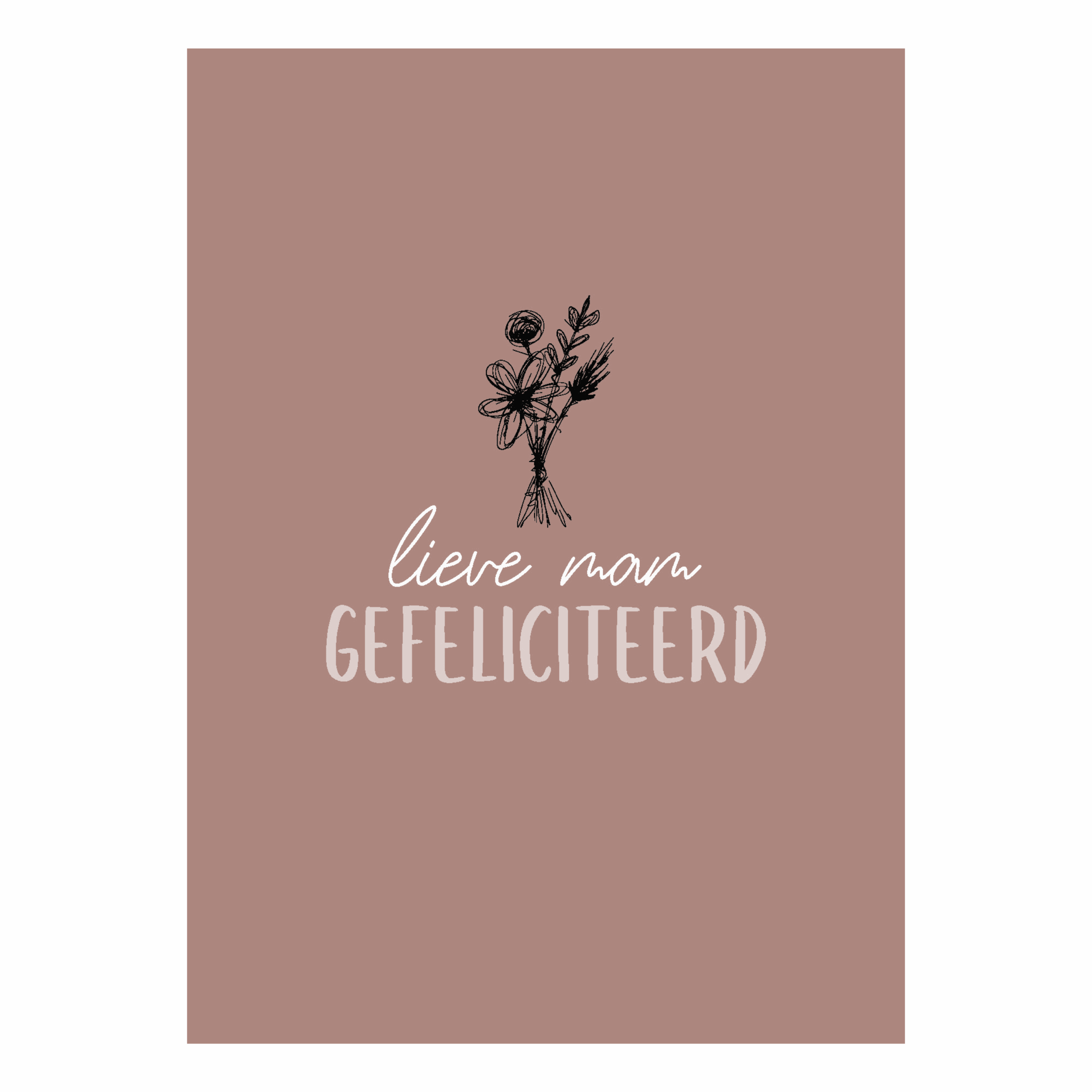 Christelijke dubbele kaart van ca 11×16 cm met de tekst: ‘Lieve mam, gefeliciteerd‘