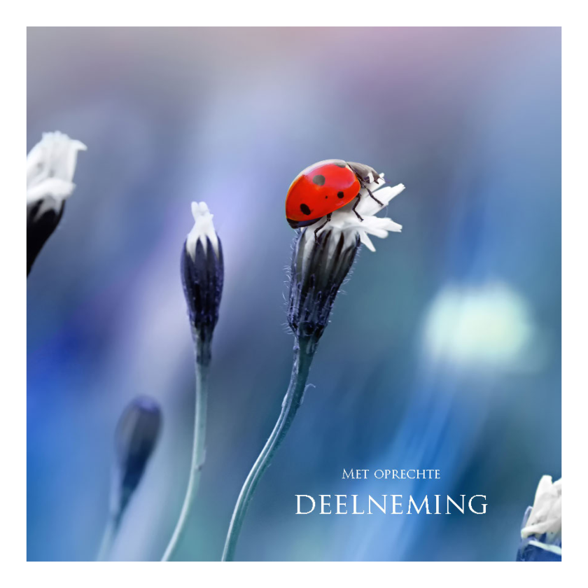 Deze vierkante, dubbele wenskaart (ca. 15 x 15 cm) is geschikt om te sturen bij een overlijden. Laat weten dat je meeleeft! Wordt geleverd met envelop.