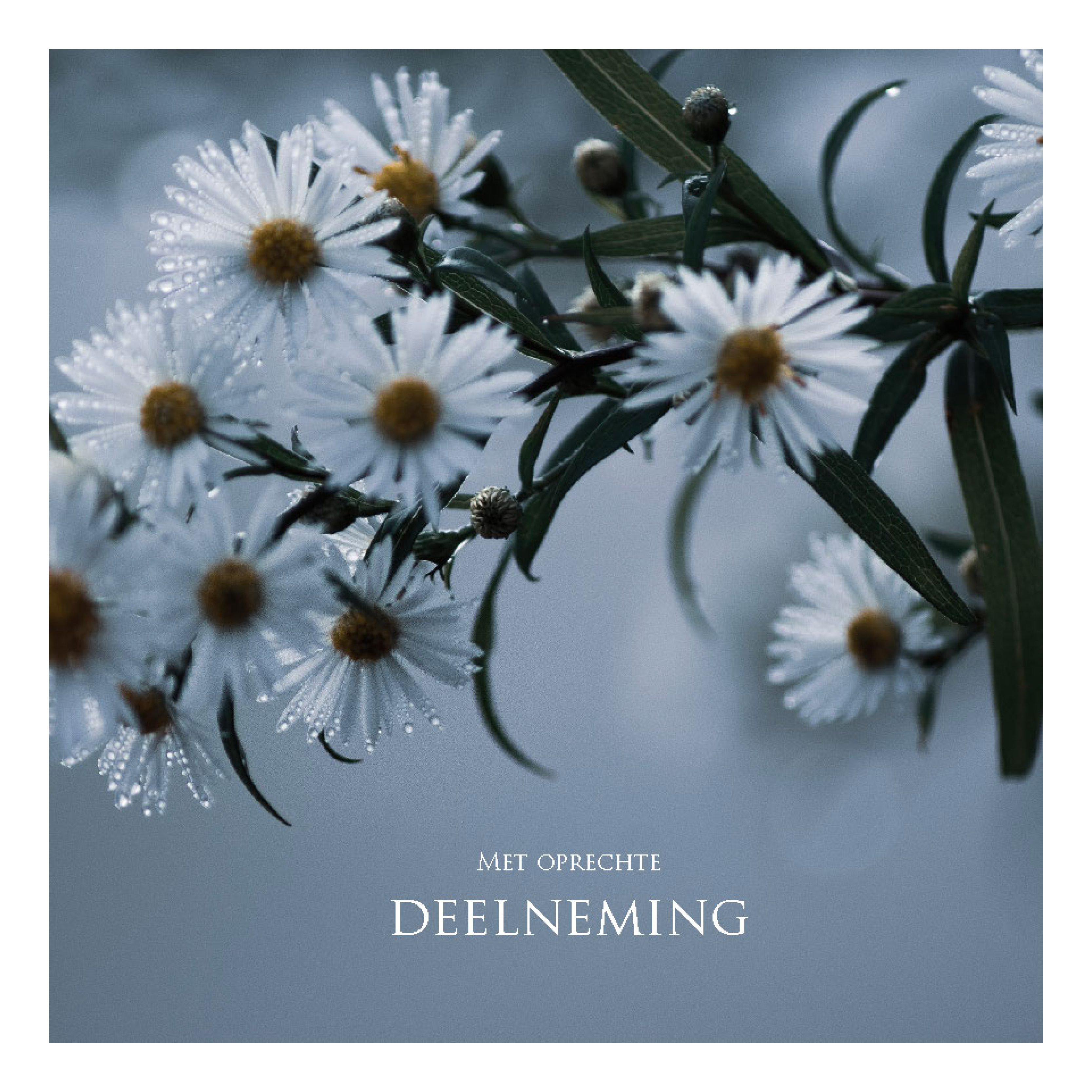 Deze vierkante, dubbele wenskaart (ca. 15 x 15 cm) is geschikt om te sturen bij een overlijden. Laat weten dat je meeleeft! Wordt geleverd met envelop.