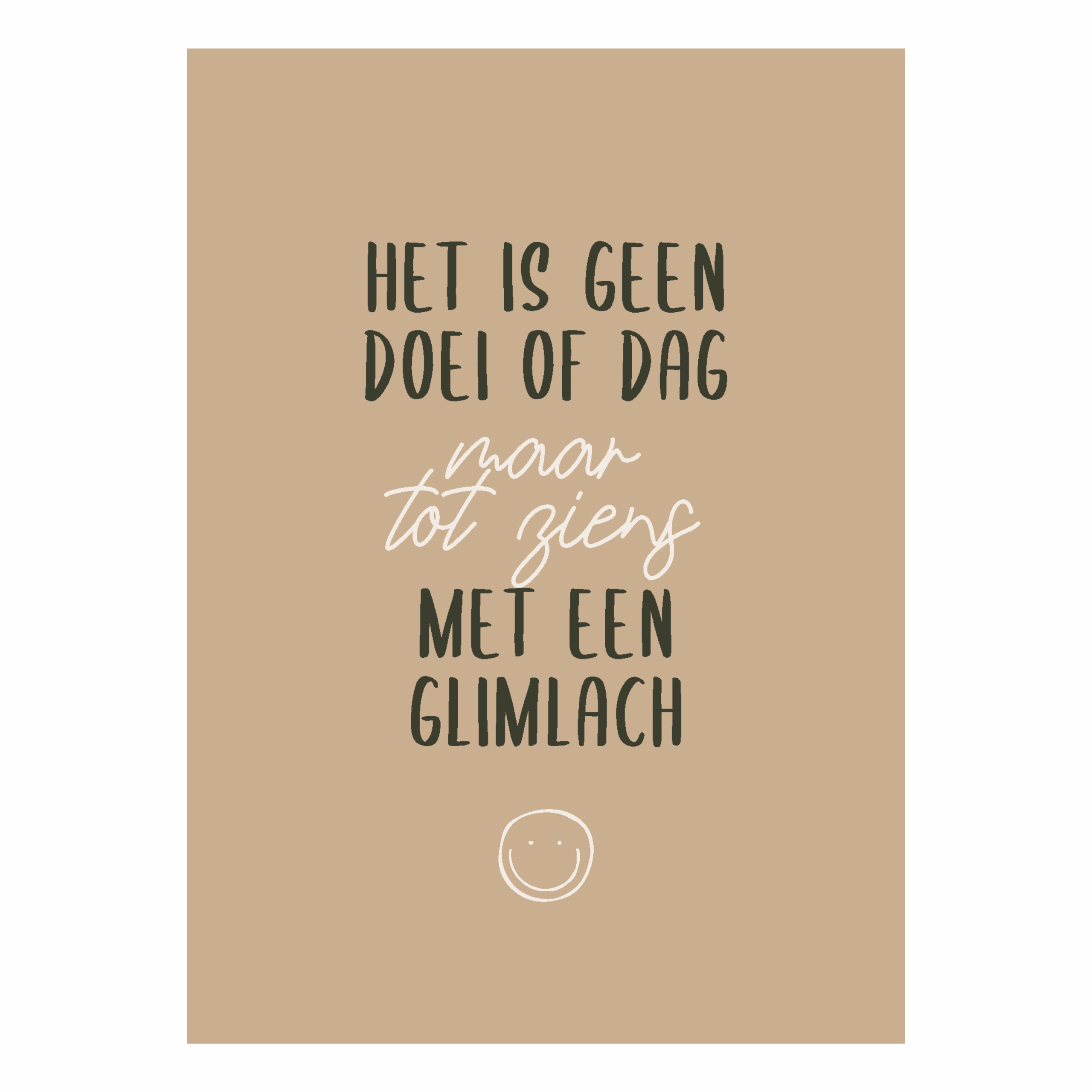 Christelijke dubbele kaart van ca 11×16 cm met de tekst: ‘Het is geen doei of dag, maar tot ziens met een glimlach’