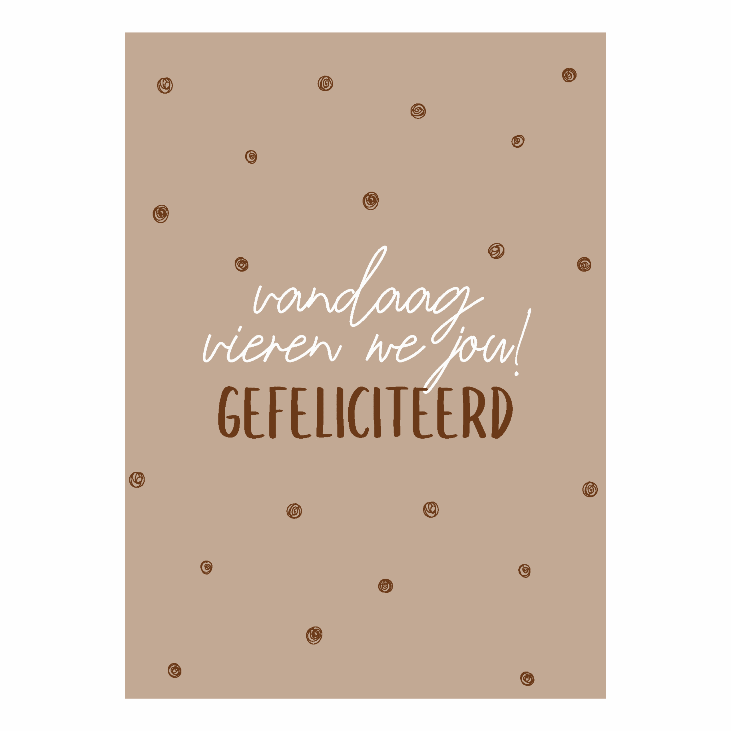 Christelijke dubbele kaart van ca 11×16 cm met de tekst: ‘Vandaag vieren we jou! Gefeliciteerd‘